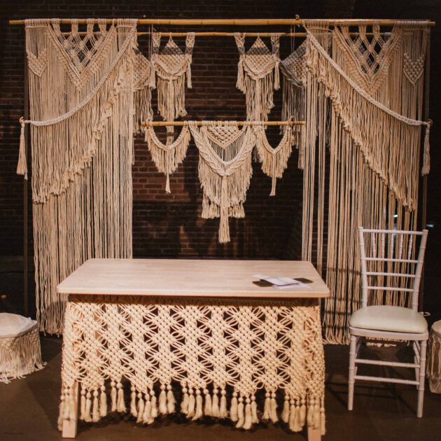 •Prachtige boho styling van macrame als decor voor de ceremonie